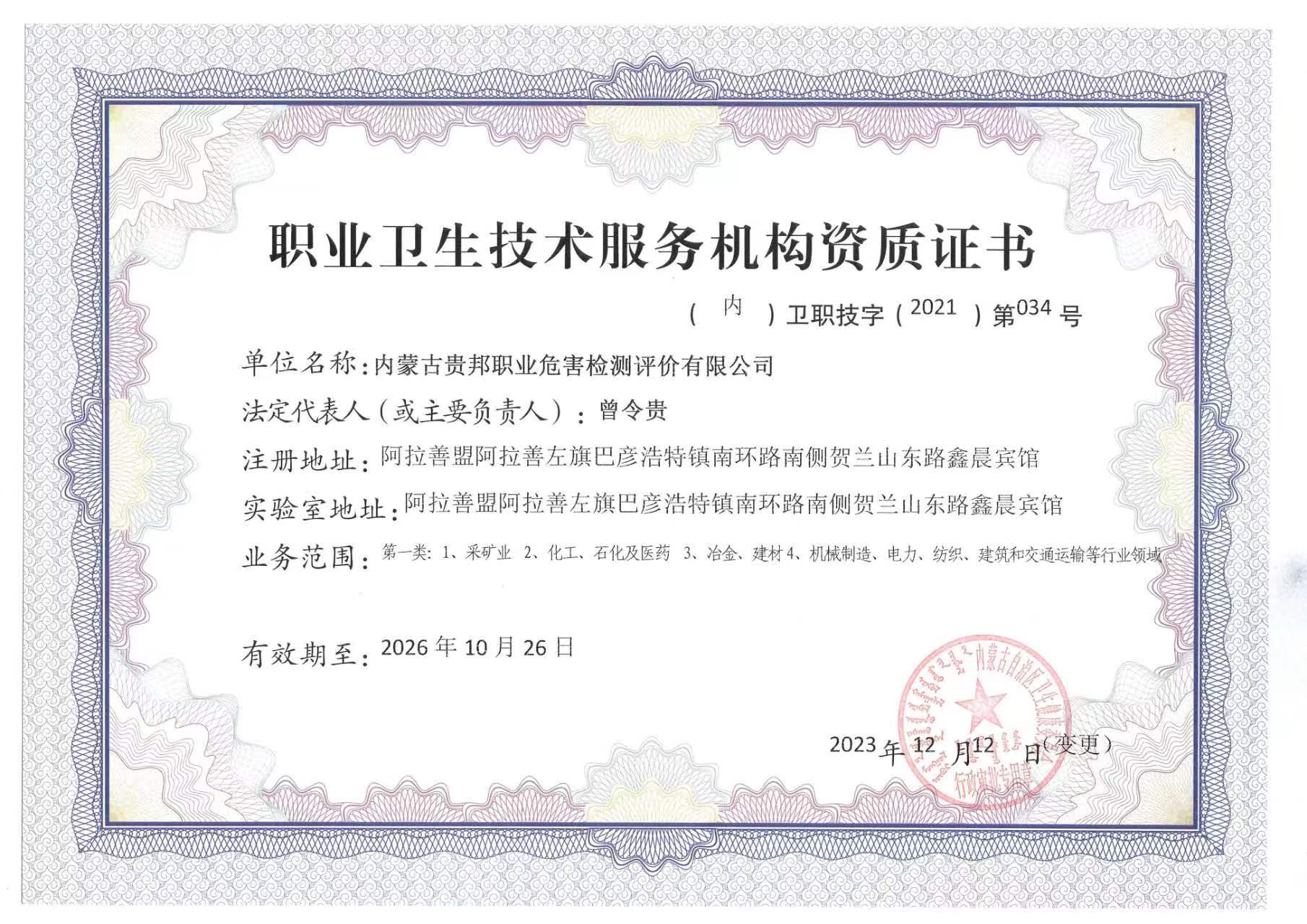 內(nèi)蒙古貴邦職業(yè)危害檢測(cè)評(píng)價(jià)有限公司(m.sw-tica.com)版權(quán)所有 地址:阿拉善盟阿拉善左旗賀蘭山東路加氣站南側(cè)鑫晨賓館一樓 24小時(shí)熱線:18947252199 蒙ICP備:蒙ICP備21006705號(hào)-1 公安備案號(hào):50011802010212
